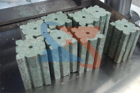 2. 所有動作由微電腦PLC控制,連續自動??蛇m當調節壓制時間,壓力、產品厚度。保證產品壓力穩定,密度一直,尺寸誤差小。